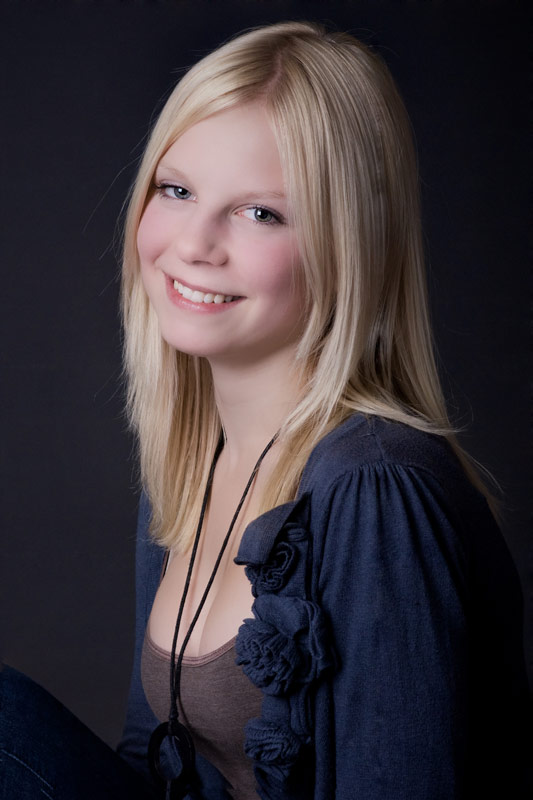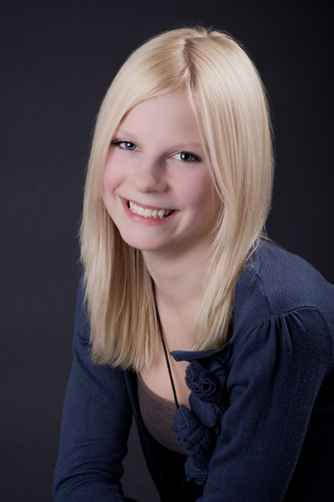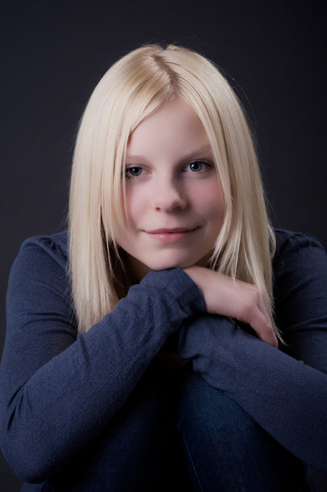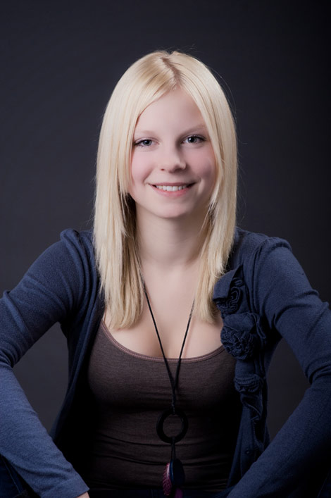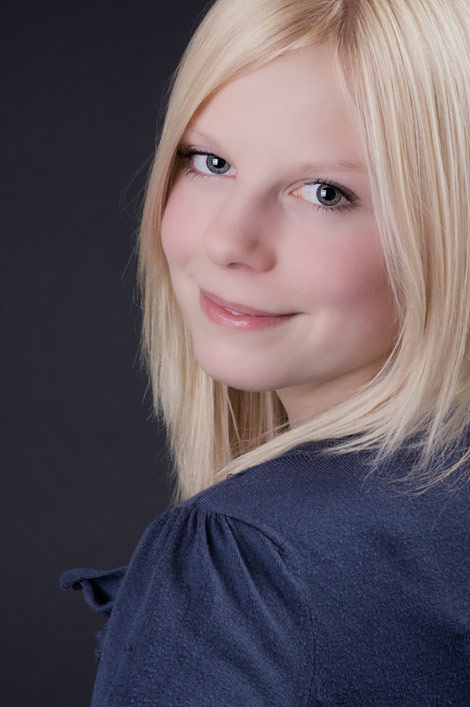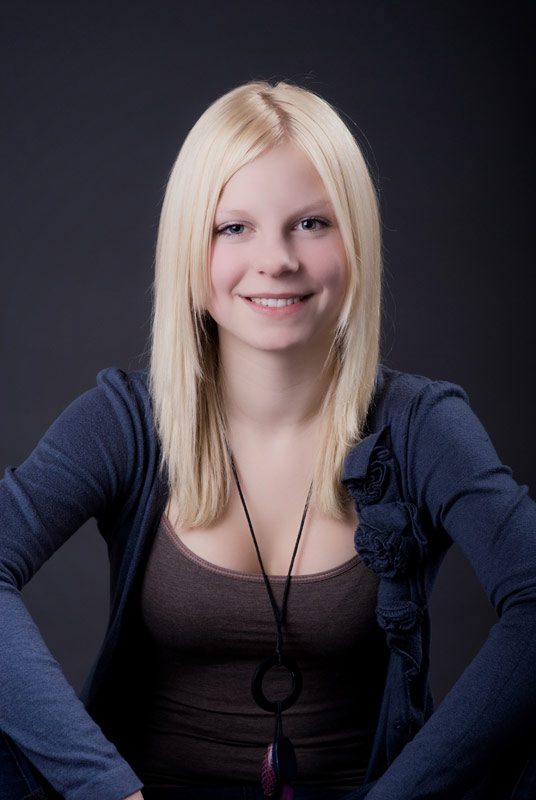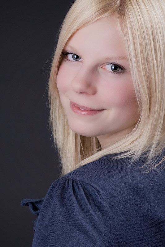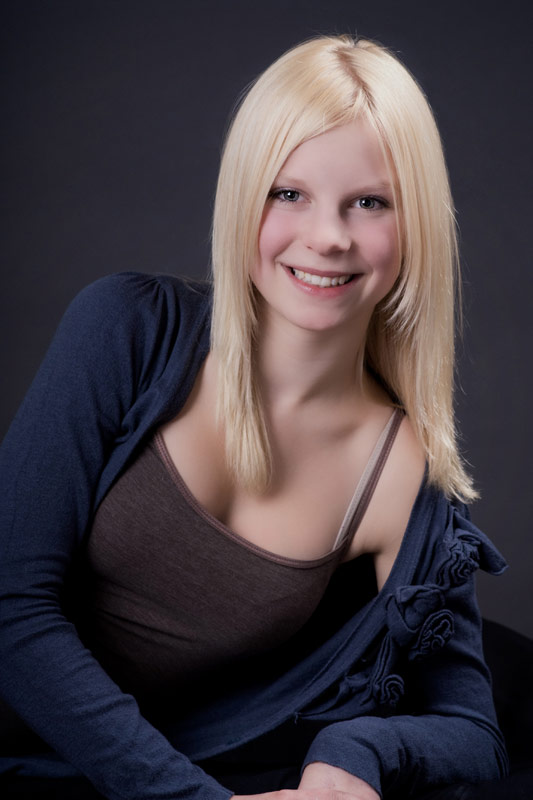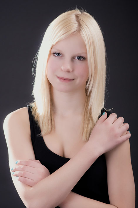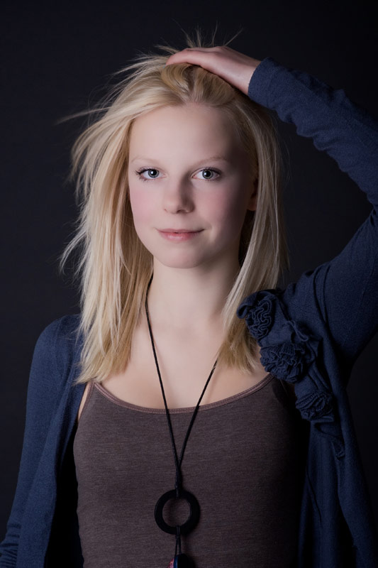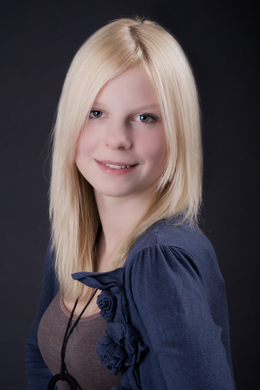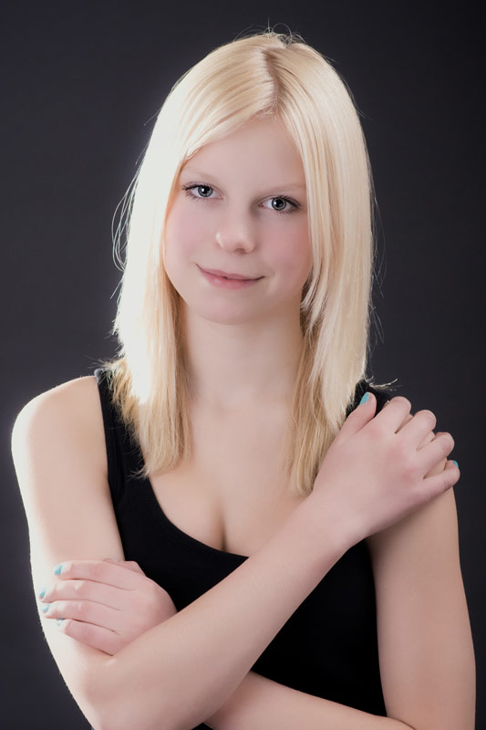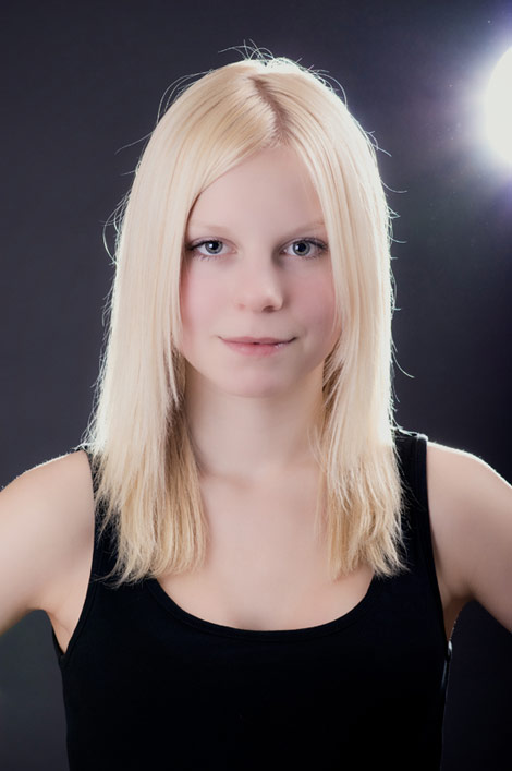 Diese tollen hellen blonden Haare müssen einfach vor einem dunklen Hintergrund, damit sie noch mehr leuchten. Annabell lässt ihre blonde Mähne wehen.