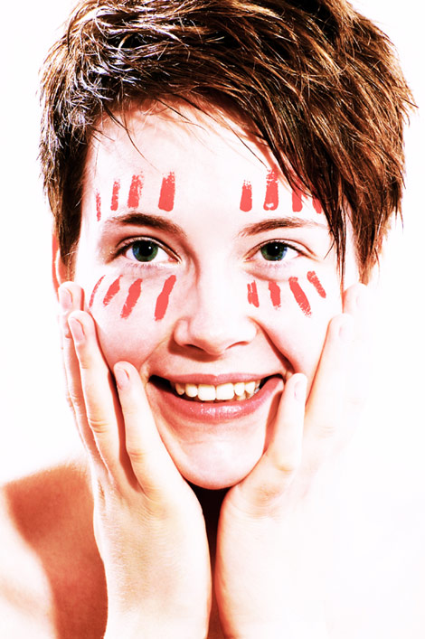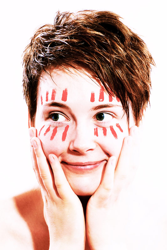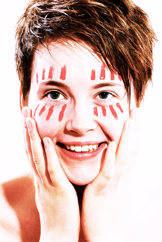 bannerVon Aufnahme zu Aufnahme kam mehr Farbe ins Spiel. Natürlich fängt irgendwann die trocknende Farbe an zu zwicken, und wenn sich das Zwicken über den gesamten Oberkörper verteilt, dann muss man als Model auch mal etwas unangenehmes aushalten.