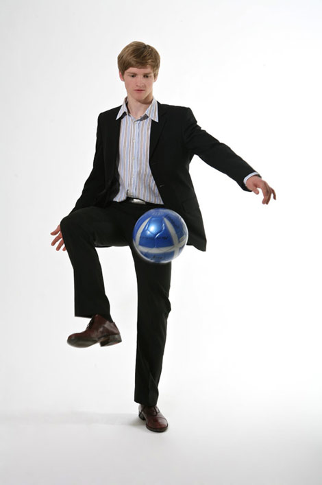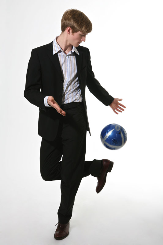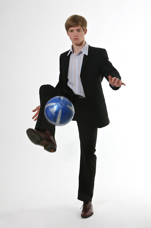 Jungs kriegt man mit Bällen. Eigentlich hatte Wilhelm genügend Eigenschaften, um mit großem Selbstbewusstsein vor die Kamera zu treten. Aber manchmal ist aller Anfang schwer. Sehr selbstkritisch ging er ins Shooting, obwohl wir schon vom ersten Moment von ihm begeistert waren. Wir heißt in diesem Fall, Jens Berger, von meinem Partnerstudio 2Licht, und ich.