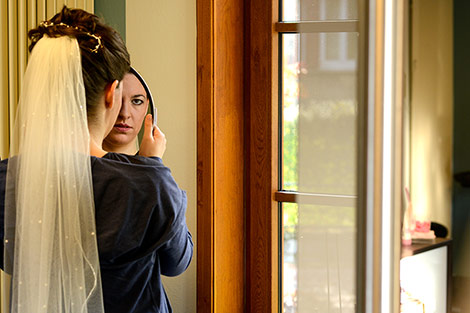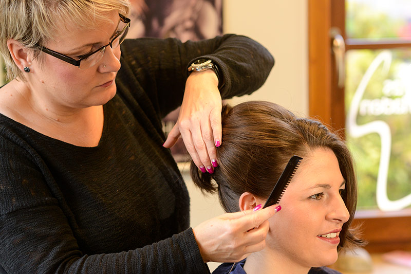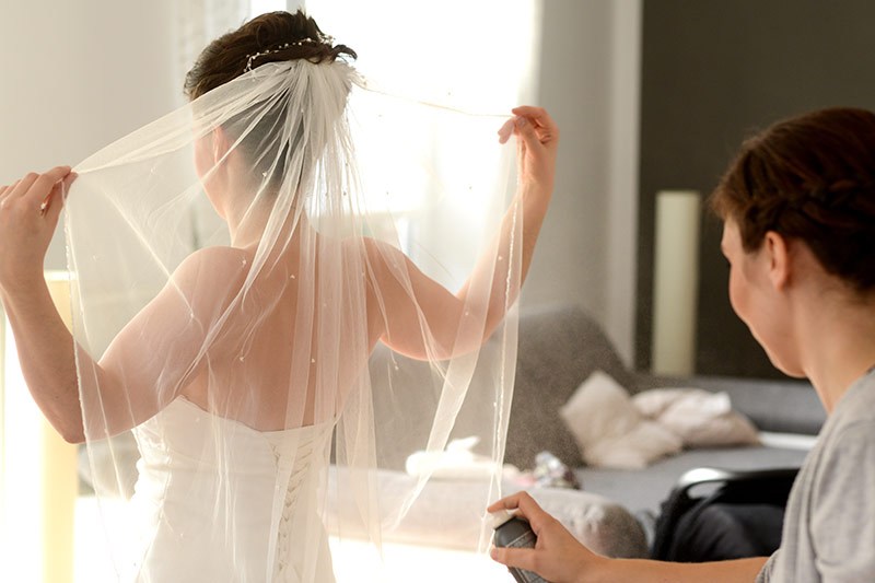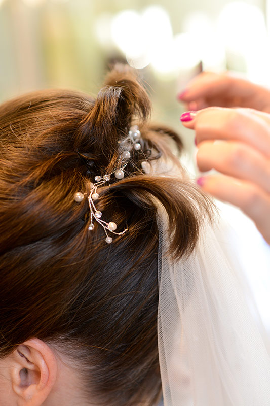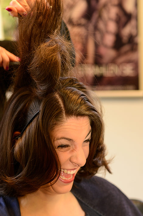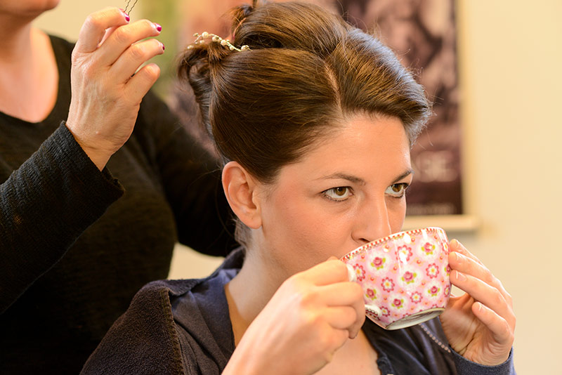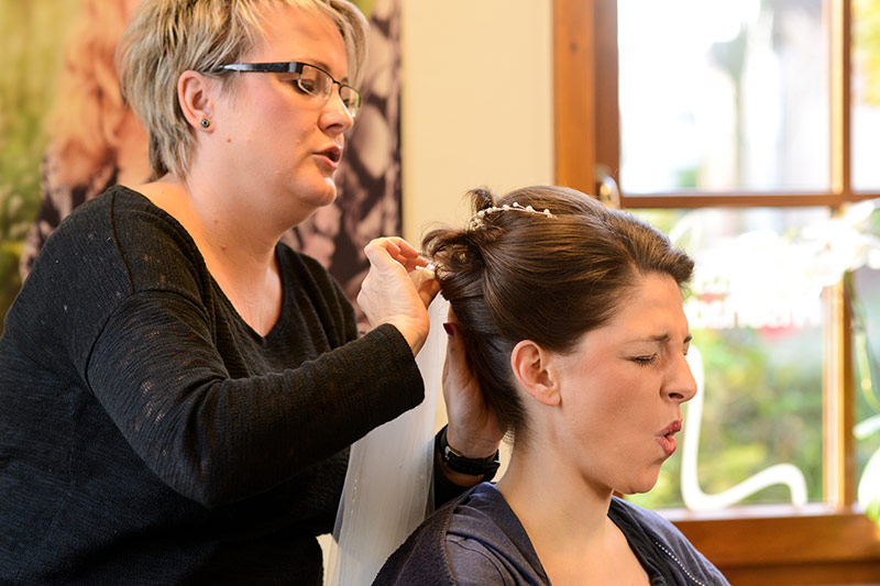 Ja, über Geschmack lässt sich streiten, oder eben nicht. Aber diese Brautfrisur ist schon besonders schön. Irgendwas zwischen klassischem Hollywoodstar und Prinzessin. Aber der Weg zu so einer Pracht kann ganz schön schmerzhaft sein. Ich bin Zeuge dieser „Qual“, die diese Braut auf sich nimmt. Aber am Ende…