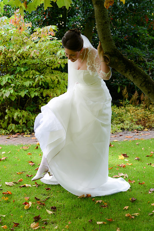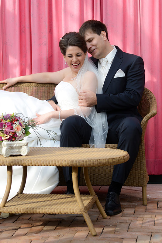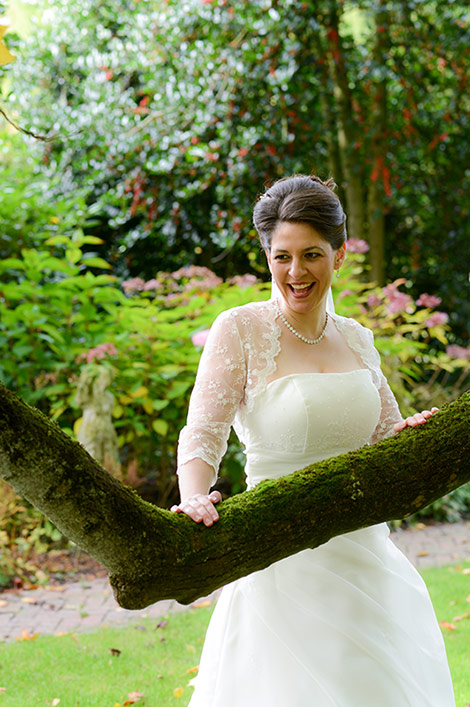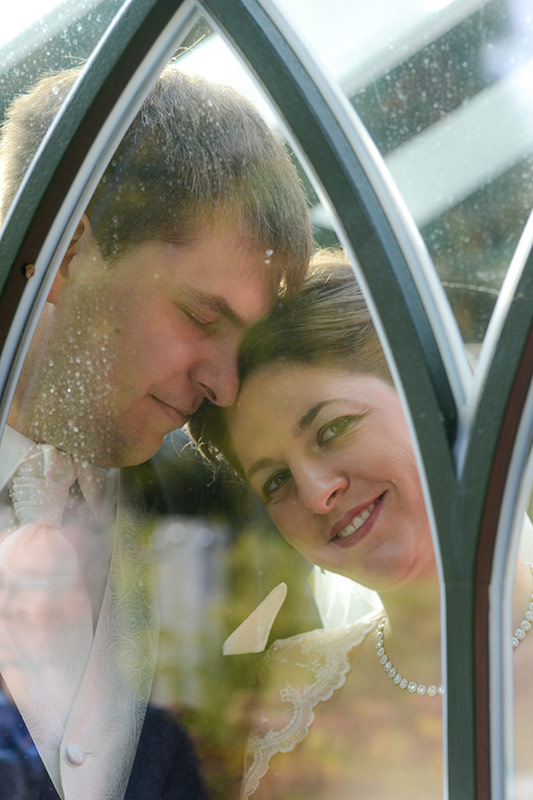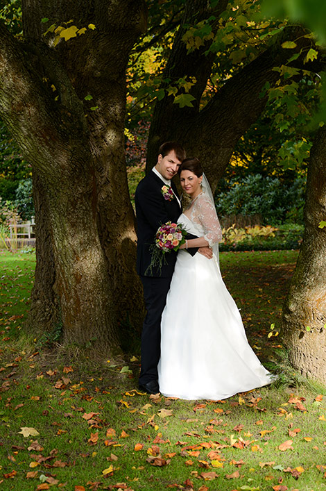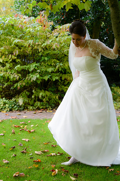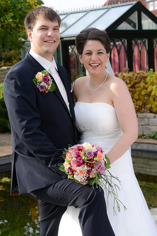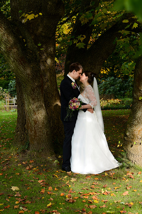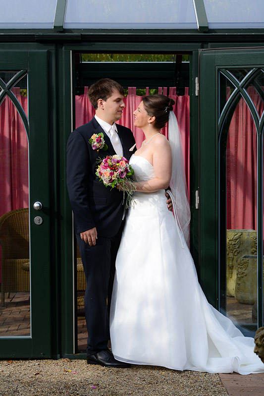 Es ist Ende Oktober schon sehr kühl, aber wenn die Sonne lacht, spürt man noch ihre schwindende Kraft. Ein goldener Oktobertag in einem schönen Garten. Was will man mehr. Überall findet man schöne und gemütliche Ecken. Das Brautpaar genießt die letzten Momente bevor der Trubel losgeht. Nach den Aufnahmen wird endlich geheiratet!