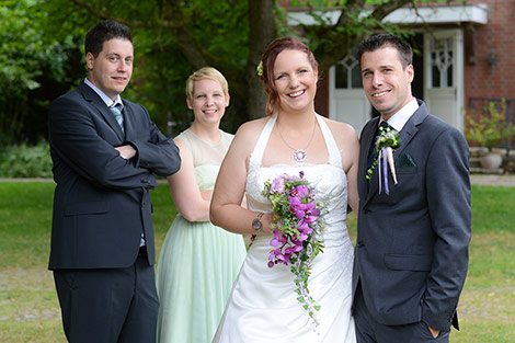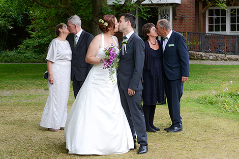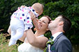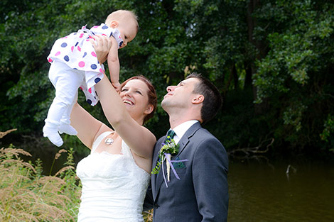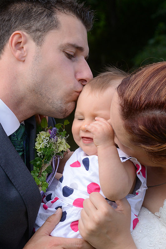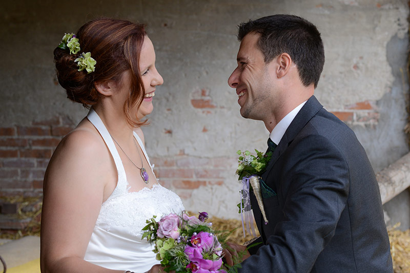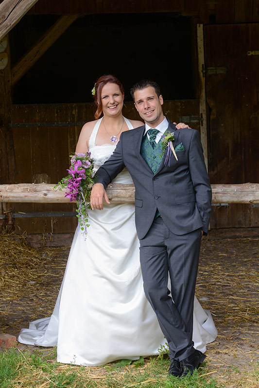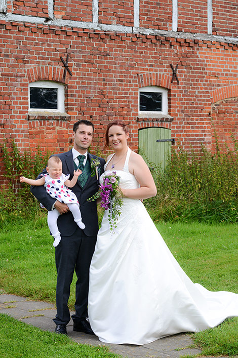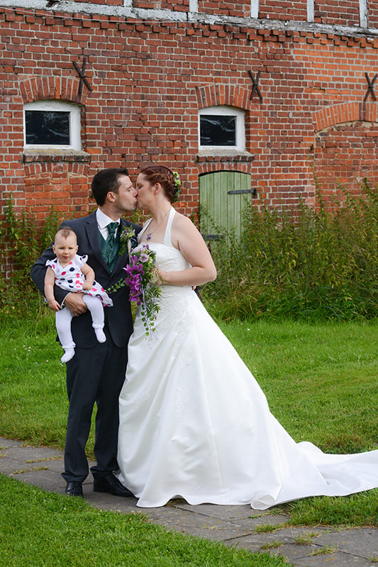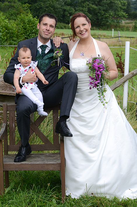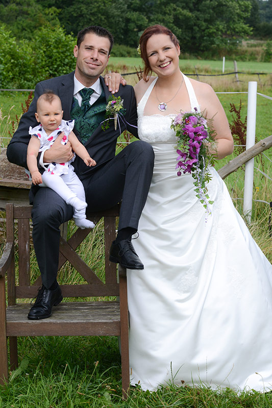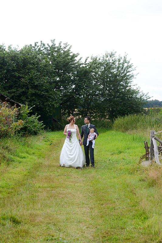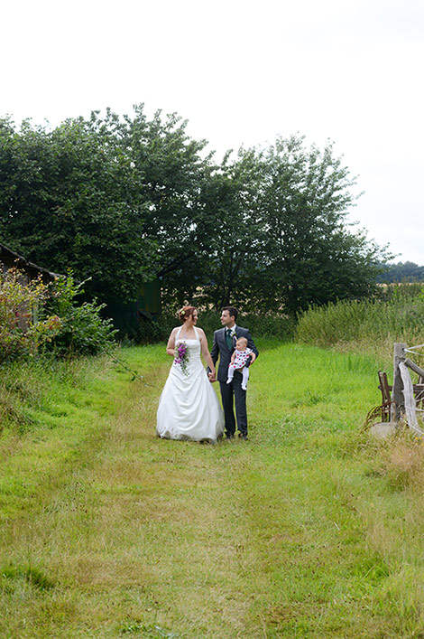 Das Brautpaar ist vermählt, die Kleine ist getauft, die Gäste sind mit spannenden Spielen beschäftigt und das Wetter spielt auch mit. Gute Vorraussetzungen für ein entspanntes Brautpaar in einem schönen ländlichen Umfeld.