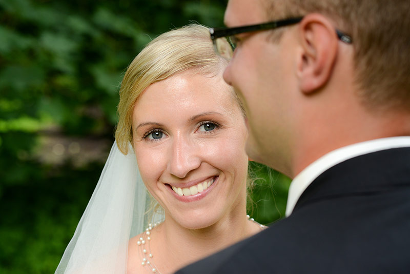 Nach der Trauung geht es noch kurz in den Kirchgarten, um ein kleines Brautpaarshooting zu starten. Die kleine frischgetaufte Tochter ist versorgt und die Gruppenbilder sind gemacht. Also bleiben uns noch einige Momente in aller Ruhe für diese Aufnahmen, bevor es zurück zur Gesellschaft geht.