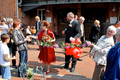 Zwischen Trauung in Bad Bevensen und der großen Feier im Eichenhof zu Rohrstorf lagen bei dieser Hochzeit einige Wochen. So erlebte das glückliche Paar zwei schönste Tage im Leben. Welch Zeichen für eine glückliche gemeinsame Zukunft, wenn an beiden Tage die Sonne über das glückliche strahlt ...