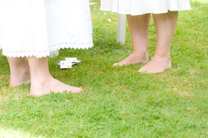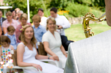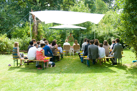 „Barfuß im Garten“. Eine romantische Vorstellung. Noch romantischer wird es, wenn sich das Paar währenddessen das „Ja-Wort“ gibt. Eine Hochzeit als romantisches Gartenfest. Ein Saxophonspieler untermalt die Trauung einer Märchenerzählerin, die mit ihrem „Märchen“ die Gesellschaft rührt. Nach der romantischen Trauung verteilte sich die Gesellschaft in dem schönen Garten des Tagungshauses „Oniva“ in Niendorf ...