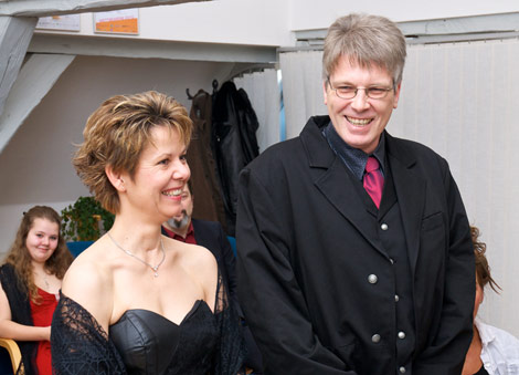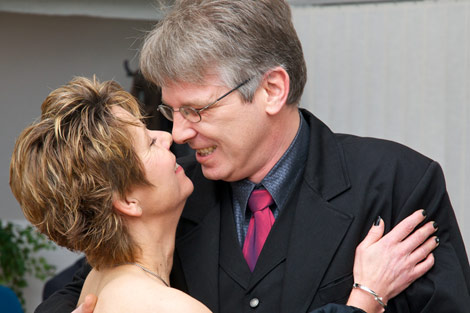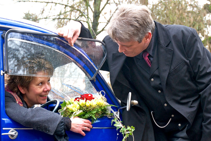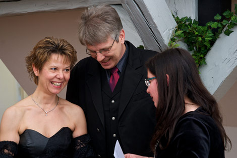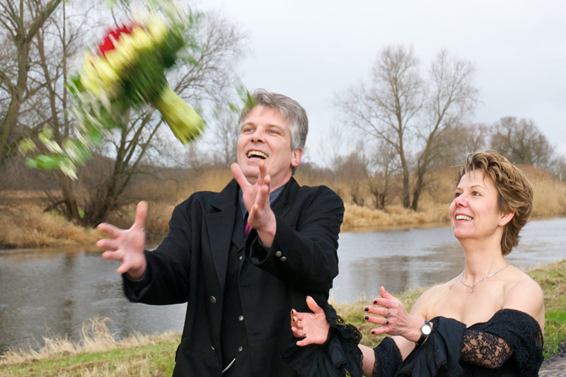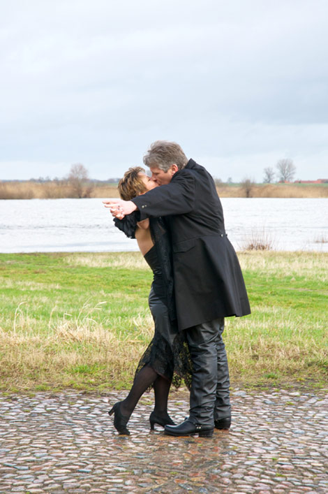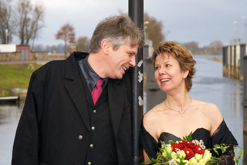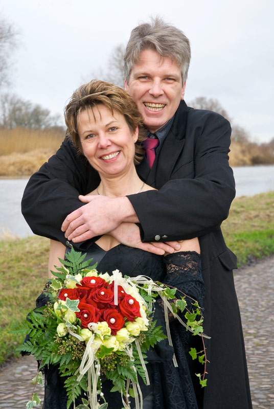 „Hallo, könnten Sie sich vorstellen eine Hochzeit in Schwarz zu fotografieren?“ So begann das erste Telefonat mit der zukünftigen Braut. Natürlich habe ich nichts dagegen. Die Gäste trugen auch auch alle Schwarz, ja selbst die Standesbeamtin trug Schwarz. Wer glaubt, dass Leute, die dunkle Kleidung tragen, nicht feierlich oder gar freundlich sein können, die täuschen sich gewaltig! Ganz im Gegenteil ...
