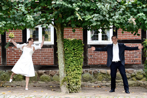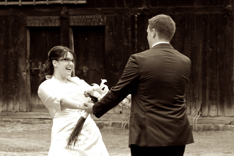 Gemeinsam lachen können ist wohl eines der beste Rezepte für eine glückliche Ehe. Bei diesem Brautpaar hatte ich den Eindruck, dass die Beiden sehr viel Spass miteinander haben. Die Freude aneinander und am Leben ist ansteckend. So hatten wir dann auch bei unserem Brautpaar-Shoot rund um den Landtagsplatz und dem angrenzendem Museumsdorf zu Hösseringen viel Spaß ...