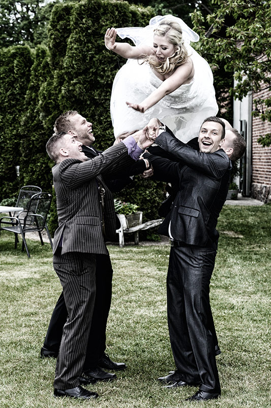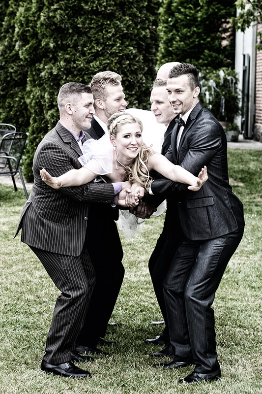 Spektakuläre Kleingruppenbilder sind nur möglich, wenn man in einer Hochzeitsgesellschaft einige lebensfrohe Gäste hat, „die jeden Sch*** mitmachen“. Auf dieser Hochzeit ist das Möglich! Trotz der knapp bemessenen Zeit haben wir viele unterschiedliche spannende Bilder aufgenommen. Ein großes Dankeschön an die Helfer, die schnell die „richtigen Personen“ zusammengesammelt haben. Ein Lob an die Darsteller!!!