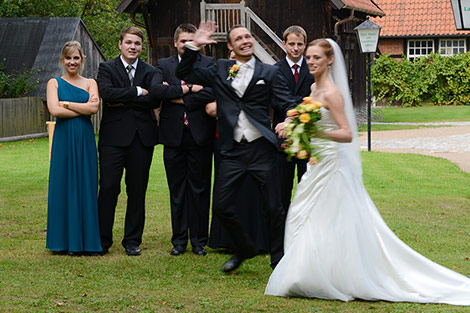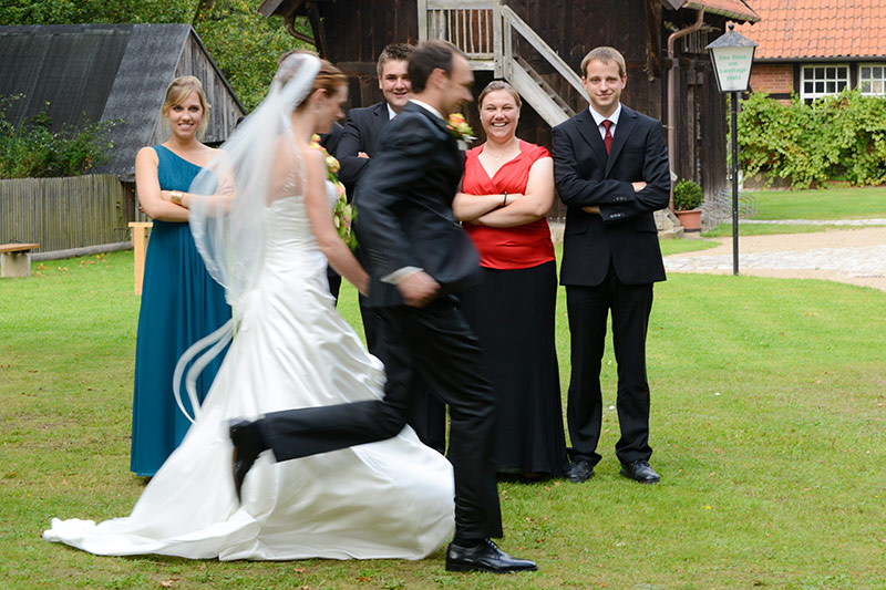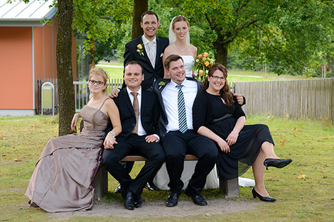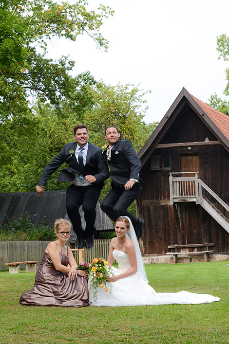 Immer öfter trifft man bei Hochzeiten auf Menschen, die gerne etwas andere Grüppchenbilder machen wollen oder eben dazu bereit sind, wenn man sie mit Ideen füttert.