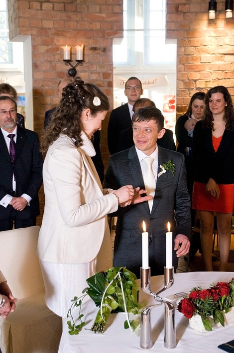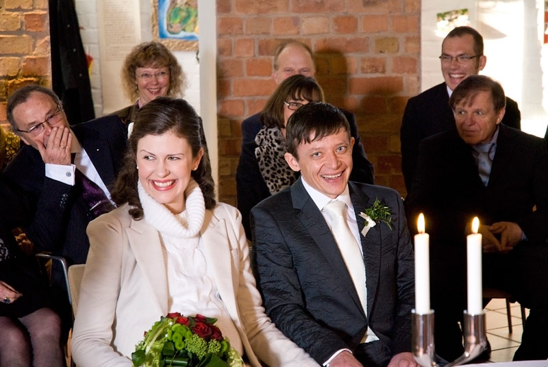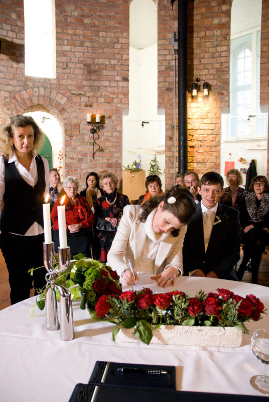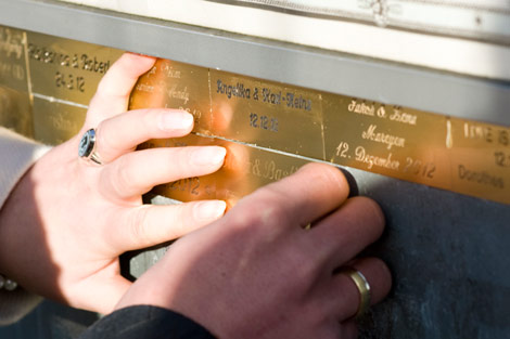 Kalt war es an diesem Dezembertag, dafür wurde das Brautpaar von einer lachenden Sonne am Wasserturm in Lüneburg begrüßt. Das wunderschöne Trauzimmer wurde von der Sonne durchflutet, so vergass man schnell die kalten Außentemperaturen. Das glückliche Lächeln des Paares erwärmte die freudige Gesellschaft. Nach der Trauung traute sich das Paar auf das Dach des Wasserturmes, um eine Plakette anzubringen ...