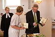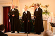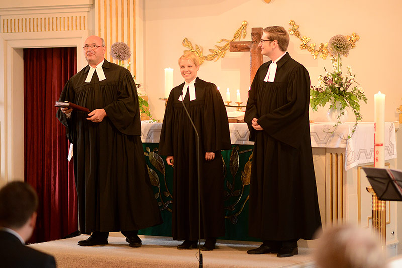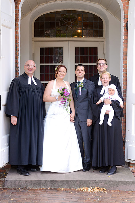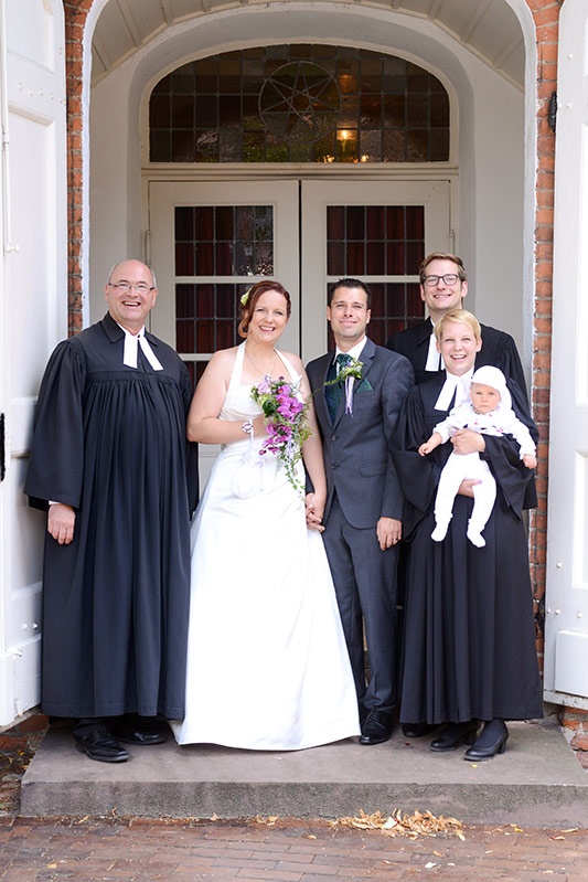 Drei Personen haben was zu feiern. Drei Geistliche begleiten sie dabei!