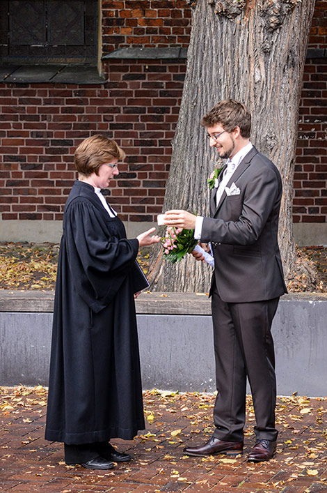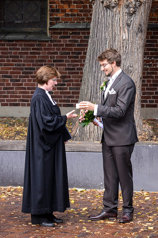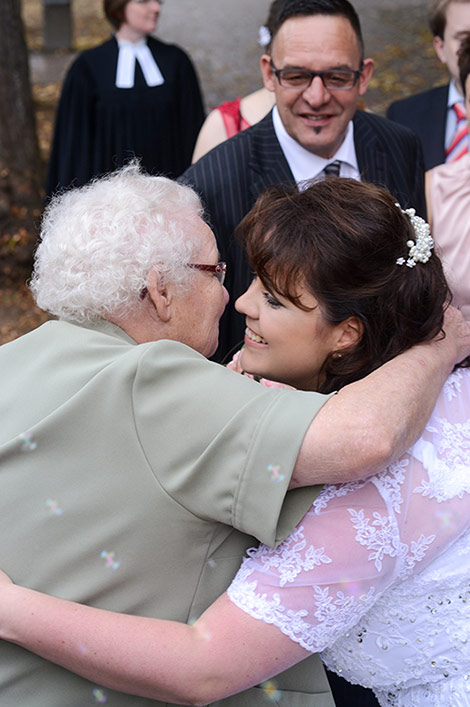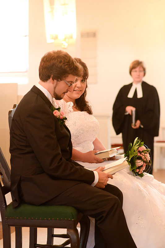 Eine ruhige und feierliche Trauung in Bad Bevensen. Das Brautpaar ist voller Freude, die Nervosität auslöst. Schön, wenn man einander stützen kann. Aus dem Stützen wird ein Tragen.