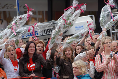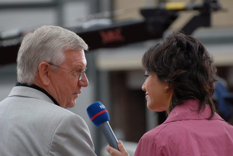 Lokale Größen, traditionelle Freizeitgruppen, Schüler und Stars der Musikbranche und des Films tummelten sich vor dem Rathaus und bildeten eine farbenfrohe Kulisse für die Fernsehshow.