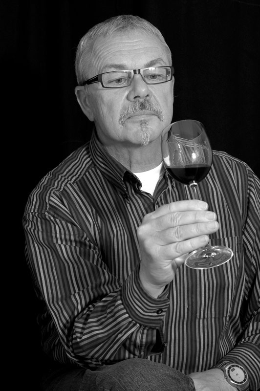 An einem ersten Termin fotografierte ich die Kunden der beiden Läden mit Brillen aus dem Angebot des Optikers oder auch mal mit einem Gläschen Wein aus dem Wein-Fachgeschäft.